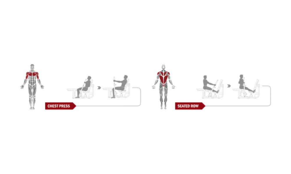 Для удобства пользователей — новичков на тренажере размещена инструкция, где наглядно показано какие группы мышц будут задействованы именно на этом тренажере, а также техника выполнения упражнений.